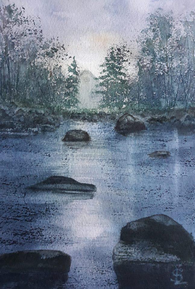 paperi 100%coton, vesiväri Winsor& Newton ja White night